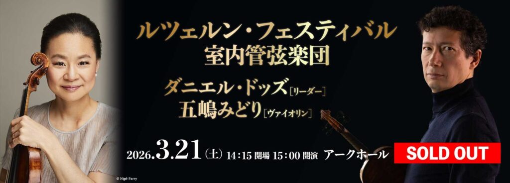 • 【完売御礼】3/21(土)15:00開演「ルツェルン・フェスティバル室内管弦楽団 ダニエル・ドッズ[芸術監督/リーダー] 五嶋みどり[ヴァイオリン]」は、完売のため当日券販売はございません。